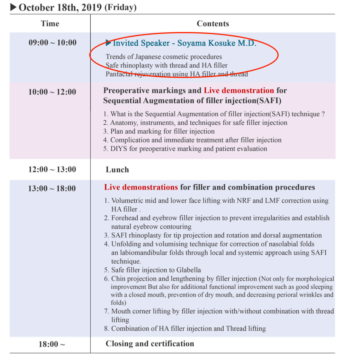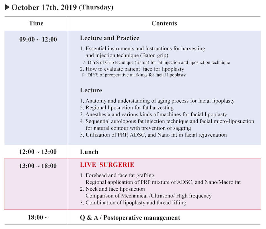Sequential Autologous Fat Injection and Sequential Augmentation of Filler Injectionのワークショップとハンズオンセミナーです。