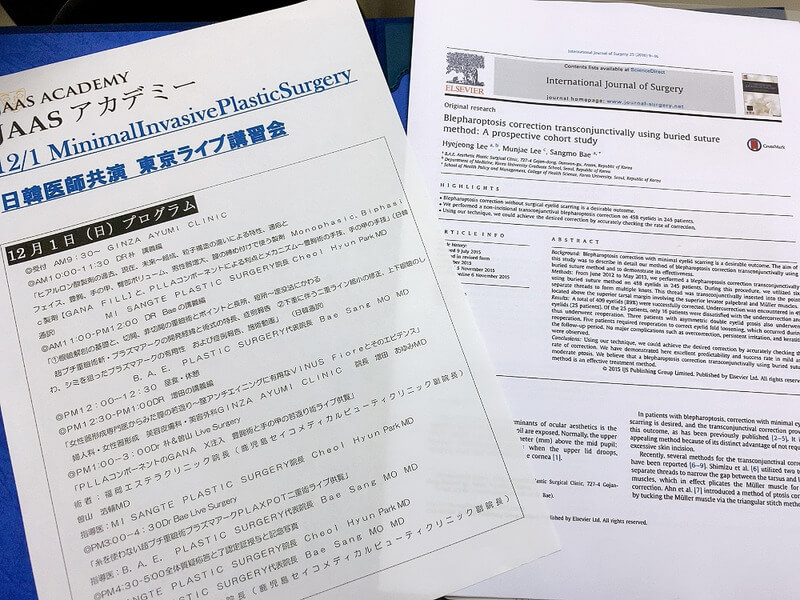 論文「Blepharoptosis correction transconjunctivally using buried suture method: A prospective cohort study」の著者でもあるDr.Baeにより、眼瞼下垂、プラズマアークを使った上下眼瞼、二重術について伝授していただきました。
