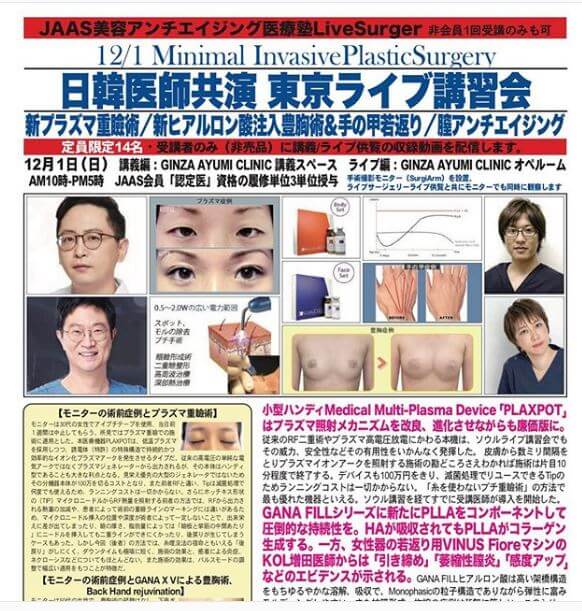 ヒアルロン酸に関しては、安全にかつ長期的に持続する方法が韓国のDr.Parkから発表され、豊胸術と手の甲のライブサージェリーでは日本と韓国の方法の違いについて活発に議論しながらオペができました。
