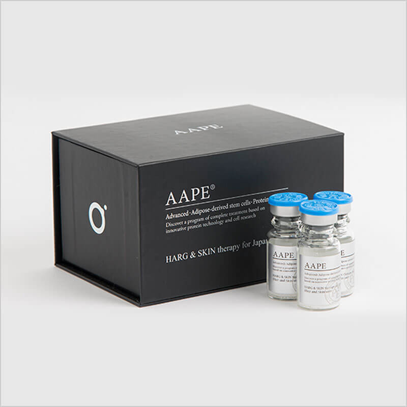 AAPEは脂肪幹細胞の培養中の上澄みを集めた生体タンパク質であり、従来のHARG療法に比べ、約3倍の生体タンパク質を配合します。