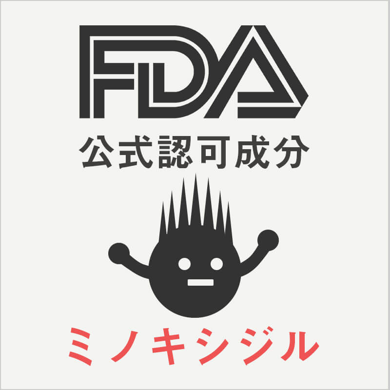 元々は血管拡張剤として開発され、発毛剤としてFDAから認可された唯一の成分。頭皮の血流を促し、有効成分を行き渡らせます。